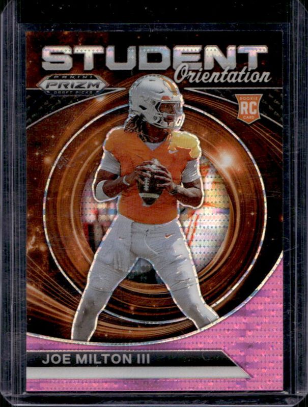 The Joe Milton III 2024 Prizm Draft Picks #SO-JM Student Orientation - Neon Pink Pulsar /15 Rookie card is 1 of 177 Joe Milton III's card variations in the 2024 Prizm Draft Picks set being tracked by Sports Card Investor, including Base, Green, Purple Wave, Red Ice, and Ruby Wave.