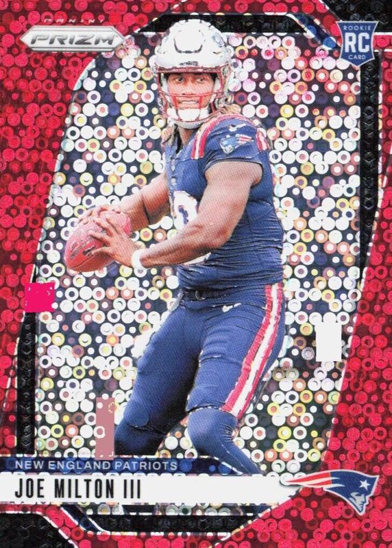 The Joe Milton III 2024 Prizm #354 No Huddle Red /75 Rookie card in Raw condition has not changed in price in the last 30 days and was last sold for $23.23 .