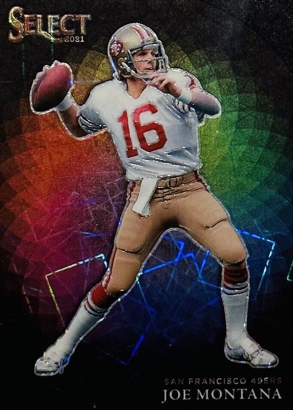 This card is 1 of 3 Joe Montana's card variations in the 2021 Select set being tracked by Sports Card Investor, including Color Wheel /(SSP), and Color Wheel - Gold /10.