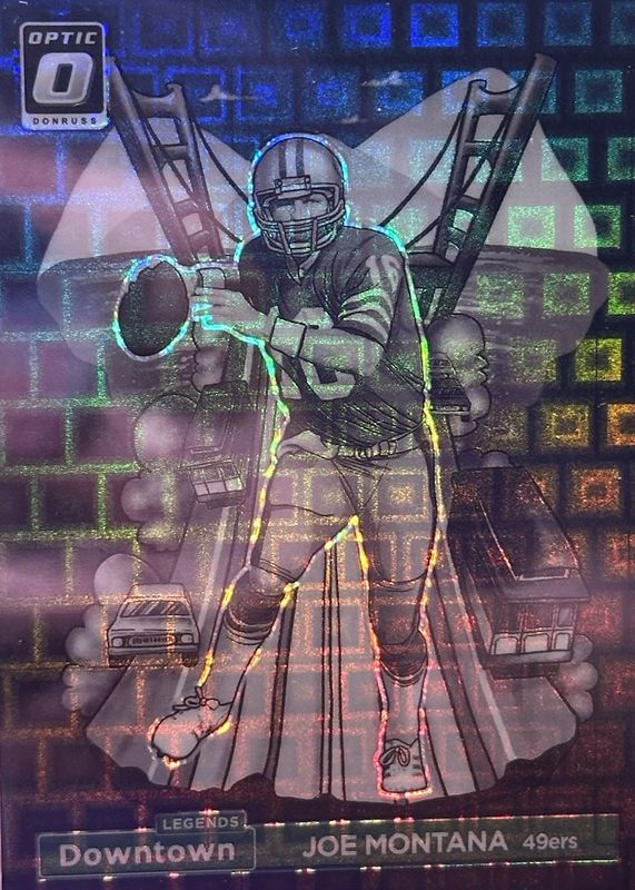 This card is 1 of 5 Joe Montana's card variations in the 2024 Optic set being tracked by Sports Card Investor, including Downtown Legends /(SSP), Downtown Legends - Gold /10, Downtown Legends - Gold Vinyl /1, and Downtown Legends - White Sparkle /1.