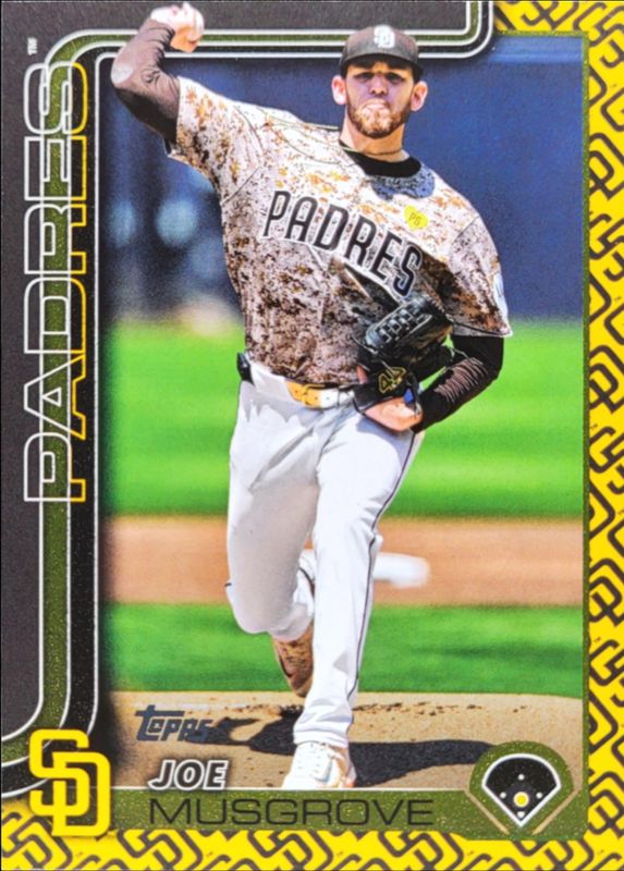 The Joe Musgrove 2025 Topps #385 Team Color card is 1 of 75 Joe Musgrove's card variations in the 2025 Topps set being tracked by Sports Card Investor, including Base, Aqua Holo Foil, Diamante Foil, Holo Foil, and Pink Diamante Foil.