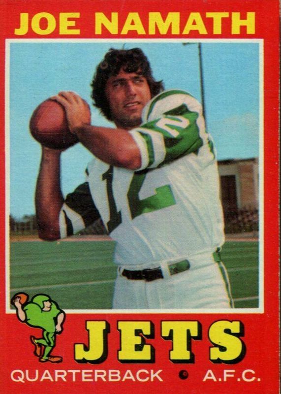 This card is 1 of 4 Joe Namath's card variations in the 1971 Topps set being tracked by Sports Card Investor, including Game Inserts, Posters, and Posters - Glossy.