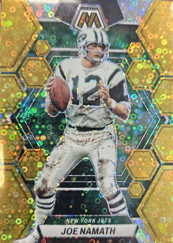 This card is 1 of 8 Joe Namath's card variations in the 2023 Mosaic set being tracked by Sports Card Investor, including Choice Peacock /(SSP), Genesis /(SSP), Honeycomb /(SSP), White Sparkle /(SSP), and Black /1.