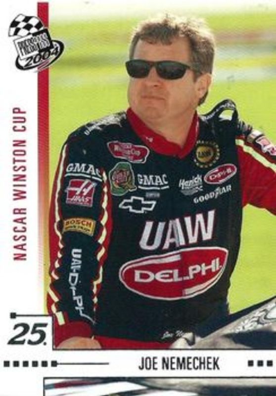 The Joe Nemechek 2004 Press Pass #23 Base card is 1 of 8 Joe Nemechek's card variations in the 2004 Press Pass set being tracked by Sports Card Investor, including Beckett Samples, Platinum, Platinum Variations, eBay Previews /5, and Autographs.