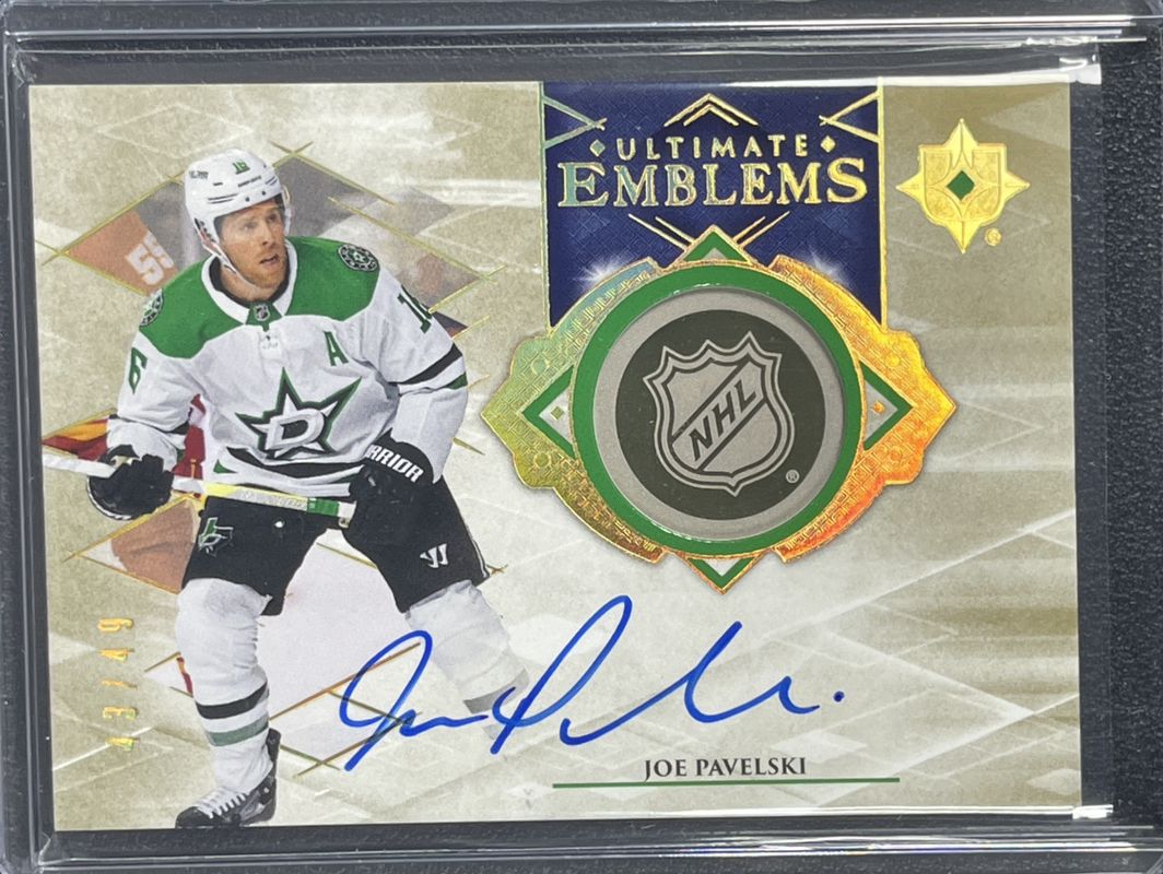 Joe Pavelski 2023 Upper Deck Ultimate Collection #UE-JP Ultimate Emblems - Gold Auto /25 RAW Price Guide