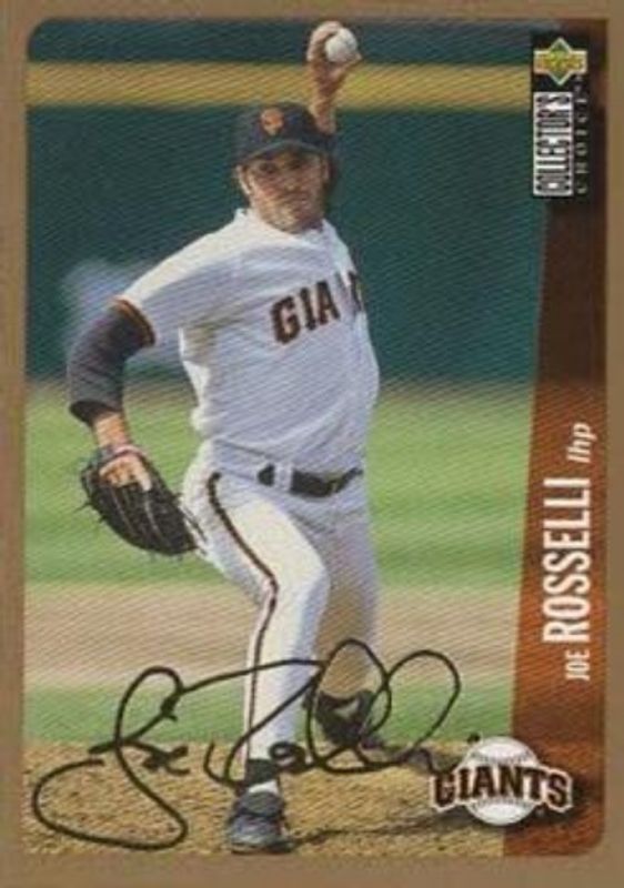 The Joe Rosselli 1996 Upper Deck Collector's Choice #307 Gold Signatures Rookie card is 1 of 3 Joe Rosselli's card variations in the 1996 Upper Deck Collector's Choice set being tracked by Sports Card Investor, including Base, and Silver Signatures.