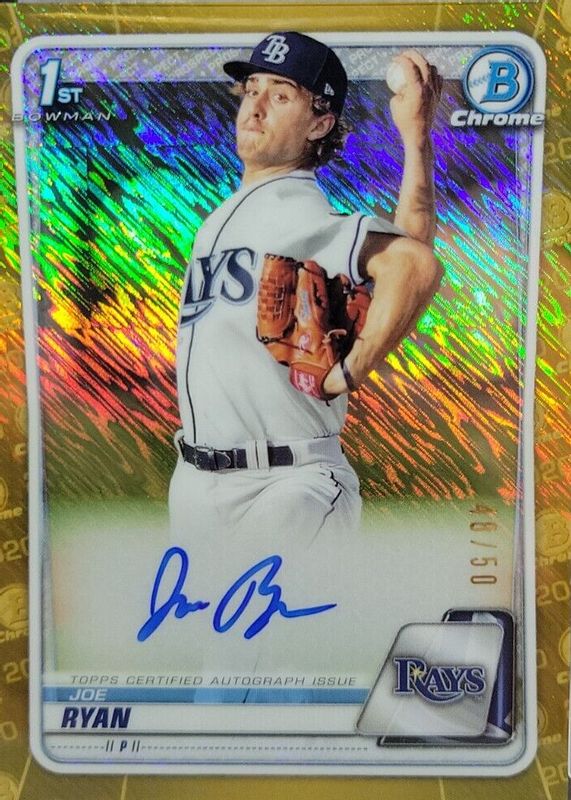 Joe Ryan's Baseball cards are available in at least 34 sets. Joe Ryan's biggest 7-day price movers are 2020 Bowman #CPA-JRY Chrome Prospect Auto - Gold Shimmer Refractor /50 (1st), 2025 Topps Update #AS-JRY All-Star Stitches, and 2025 Topps Update #AS-JRY All-Star Stitches - Orange /25.