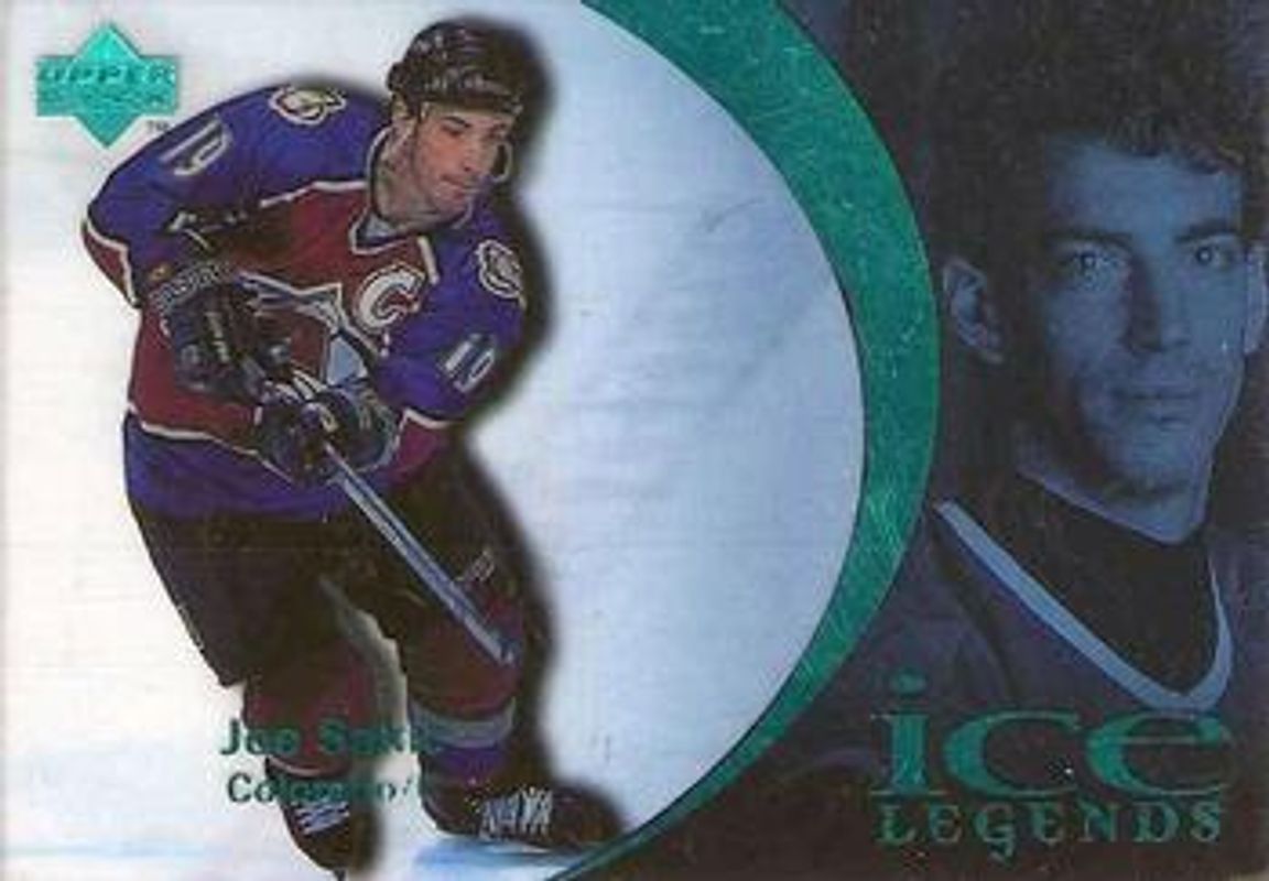 The Joe Sakic 1997 Upper Deck Ice #79 Parallel card is 1 of 5 Joe Sakic's card variations in the 1997 Upper Deck Ice set being tracked by Sports Card Investor, including Base, Power Shift, Champions, and Champions 2 Die Cuts /100.