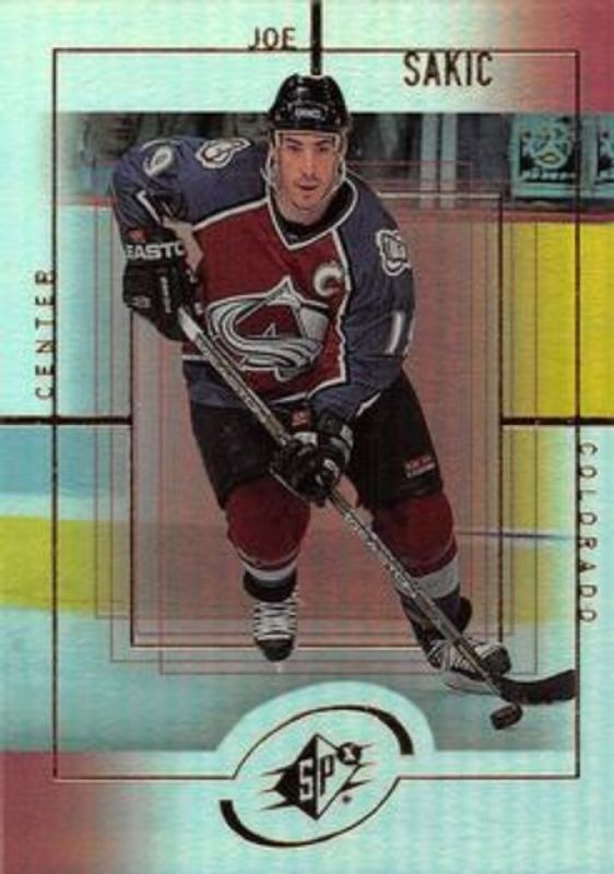 The Joe Sakic 1999 SPx #39 Base /1999 card is 1 of 4 Joe Sakic's card variations in the 1999 SPx set being tracked by Sports Card Investor, including Radiance /100, Spectrum /1, and Prolifics.