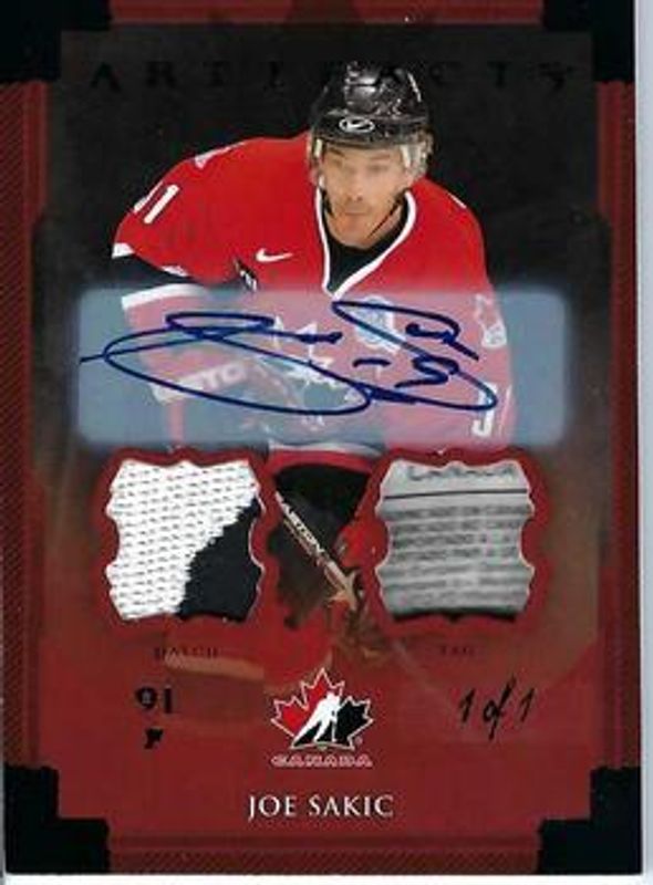 Joe Sakic 2013 Upper Deck Artifacts #140 Patch Tag Black Autographs /1 RAW Price Guide
