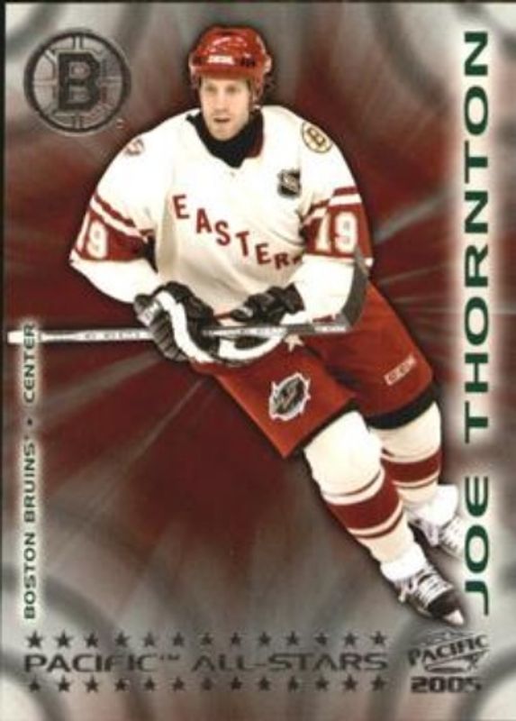 The Joe Thornton 2004 Pacific #2 All Stars card is 1 of 8 Joe Thornton's card variations in the 2004 Pacific set being tracked by Sports Card Investor, including Base, Red, Blue /250, Global Connection, and Jerseys /850.