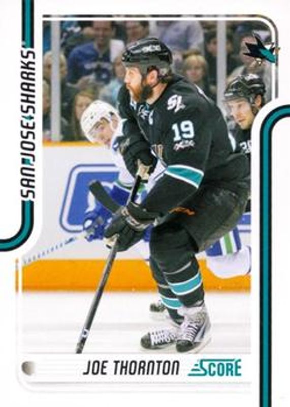 The Joe Thornton 2011 Score #385 Base card is 1 of 12 Joe Thornton's card variations in the 2011 Score set being tracked by Sports Card Investor, including #493 Base, #493 Black Ice, #385 Black Ice, #493 Glossy, and #385 Glossy.