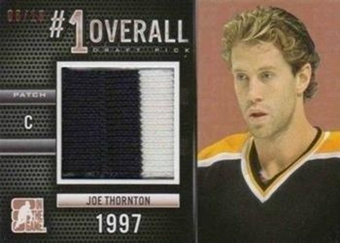 The Joe Thornton 2014 In The Game Draft Prospects #NO-14 Number 1 Overall Picks Jerseys - Silver /10 card is 1 of 33 Joe Thornton's card variations in the 2014 In The Game Draft Prospects set being tracked by Sports Card Investor, including Base, Bronze /25, Silver /10, Gold /1, and Printing Plates Black /1.