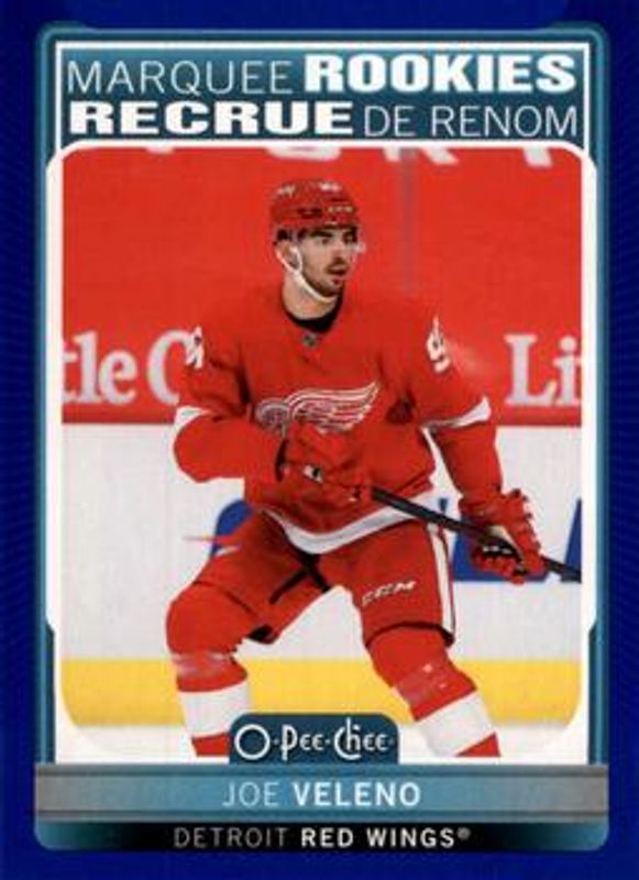 The Joe Veleno 2021 O-Pee-Chee #501 Blue Border Rookie card is 1 of 17 Joe Veleno's card variations in the 2021 O-Pee-Chee set being tracked by Sports Card Investor, including Base, Red Border, Retro, Retro Blank Back, and Retro Black Border /100.