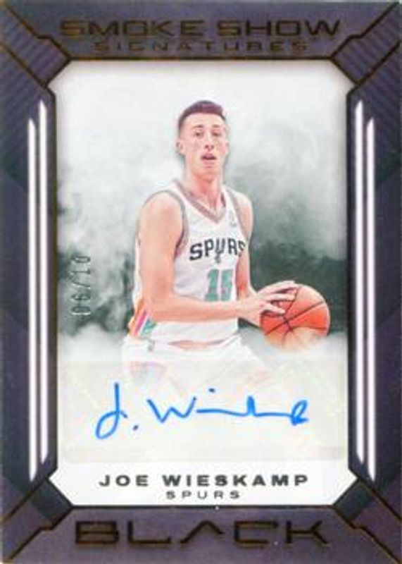 The Joe Wieskamp 2021 Black #SS-JWI Smoke Show Signatures - Copper /10 Rookie card is 1 of 12 Joe Wieskamp's card variations in the 2021 Black set being tracked by Sports Card Investor, including Rookie Jumbo Memorabilia Autographs /25, Smoke Show Signatures /25, Rookie Jumbo Memorabilia Autographs - Silver /15, Smoke Show Signatures - Silver /15, and Rookie Jumbo Memorabilia Autographs - Copper /10.