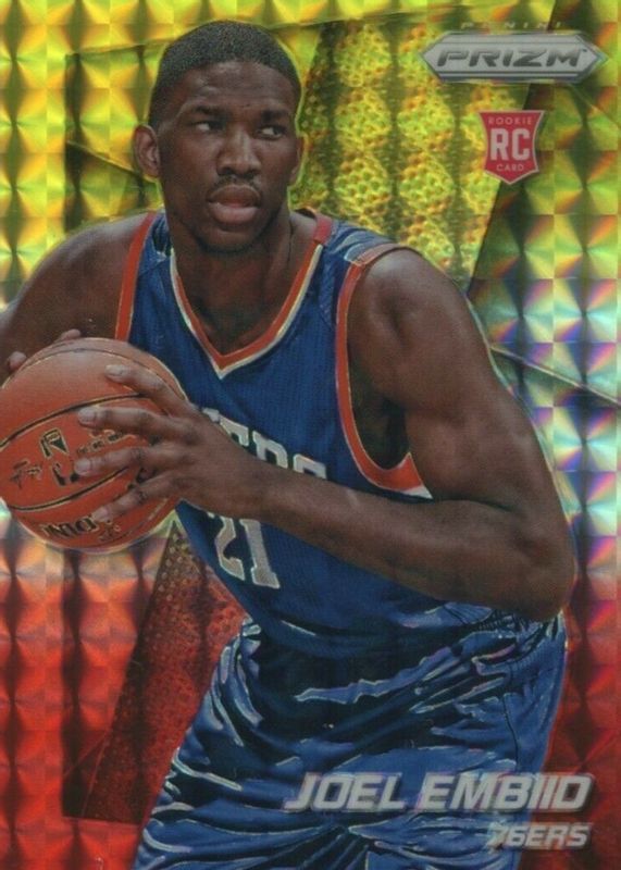 Best Prices Available For Sale of Joel Embiid 2014 Prizm #253 Yellow & Red Mosaic