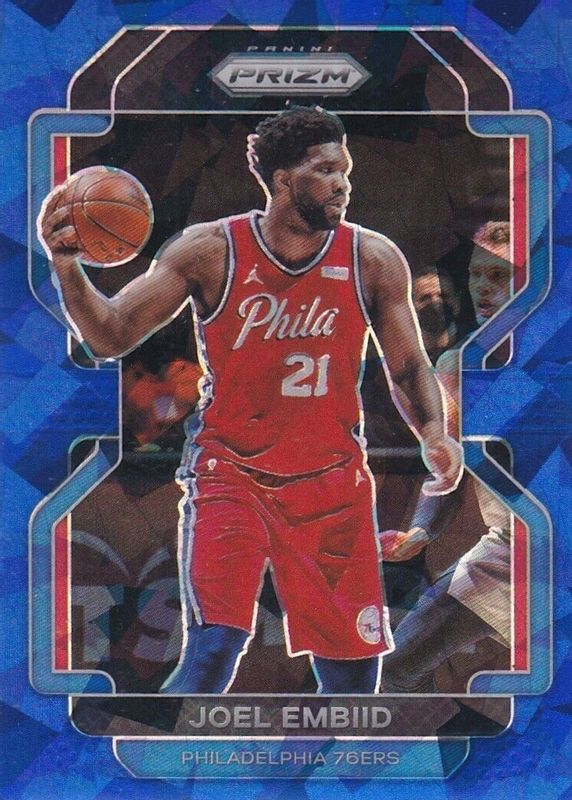2021-22 Prizm BLUE CRACKED ICE REFRACTOR SP JOEL EMBIID /125! 76ers Sixers!