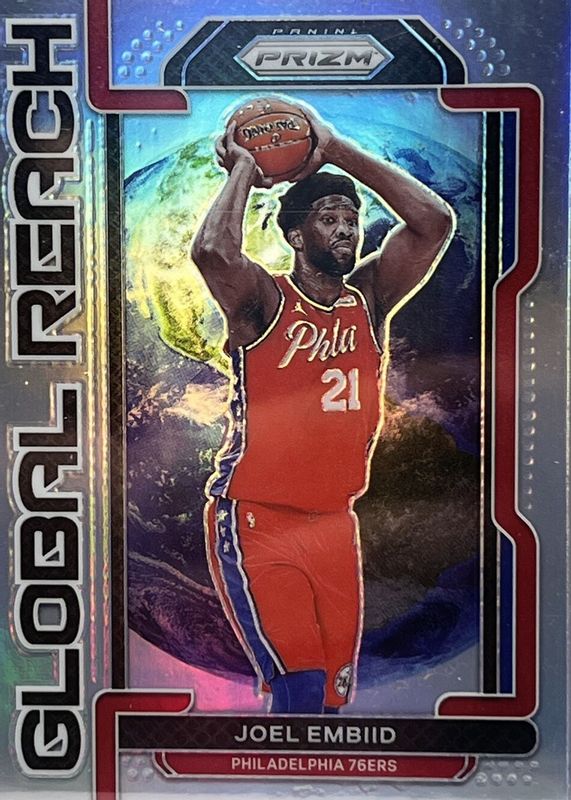 2021-22 Prizm Joel Embiid Silver Global Reach Prizm Refractor SP #2 Insert 76ers