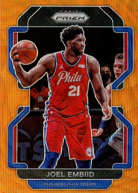 2021-22 Prizm Joel Embiid Orange Wave Prizm Parallel #39/60 76ers