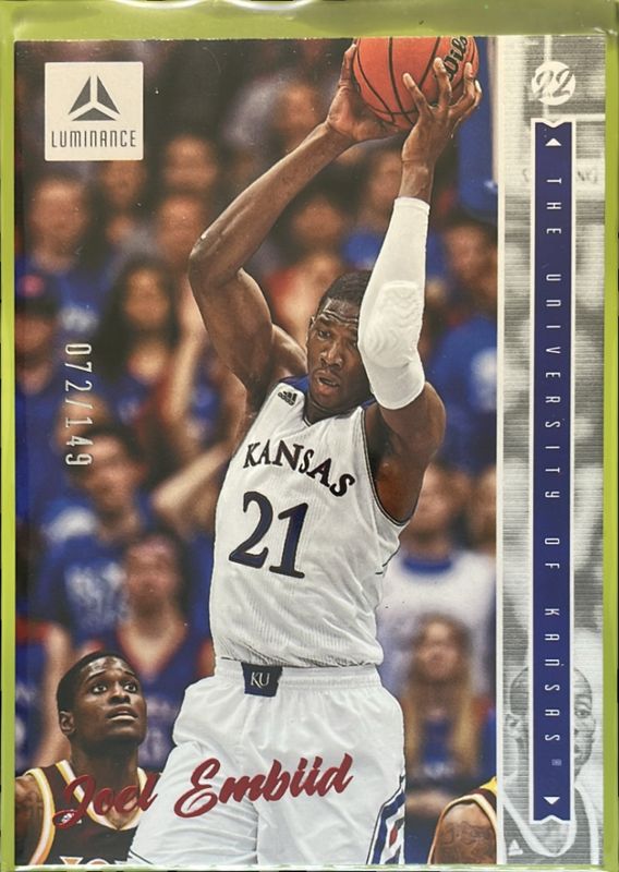 The Joel Embiid 2022 Chronicles Draft Picks #25 Luminance - Red /149 card is 1 of 50 Joel Embiid's card variations in the 2022 Chronicles Draft Picks set being tracked by Sports Card Investor, including #EX-JEM Explosive, #25 Luminance, #50 Luminance, #50 Luminance - Black, and #25 Luminance - Black.
