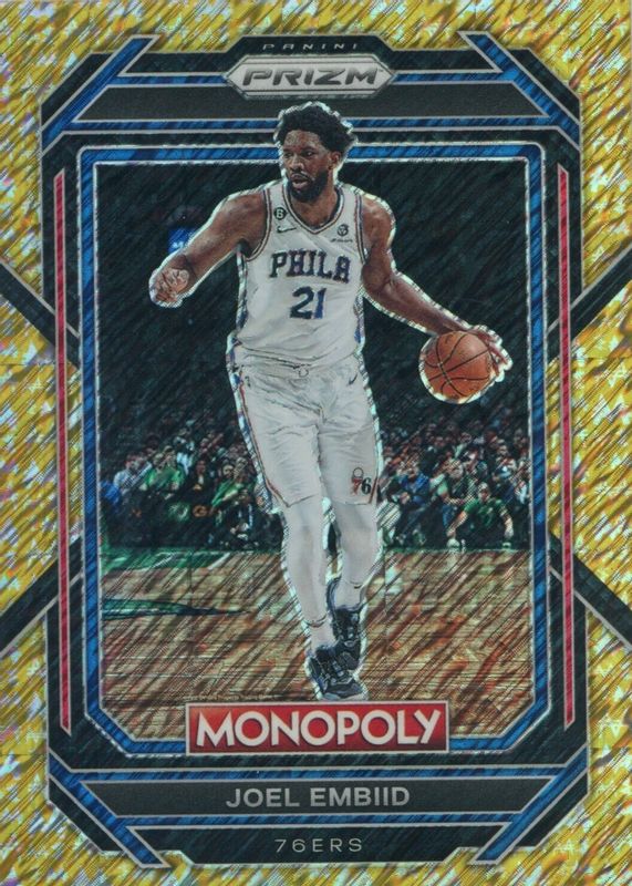Best Prices Available For Sale of Joel Embiid 2022 Prizm Monopoly #67 Gold Money Shimmer /500