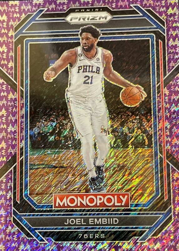 2022-23 Prizm Monopoly Joel Embiid MVP #67 Purple Money Shimmer 49/50 76ers