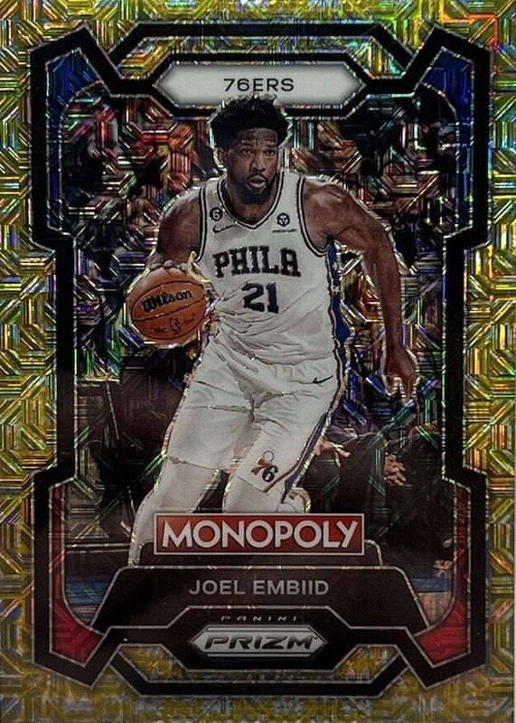 Best Prices Available For Sale of Joel Embiid 2023 Prizm Monopoly #69 Gold Millionaire Shimmer /500