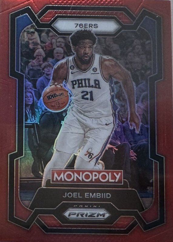 2023-24 Prizm Monopoly #69 Joel Embiid Red Prizm #’d /99 Philadelphia 76ers