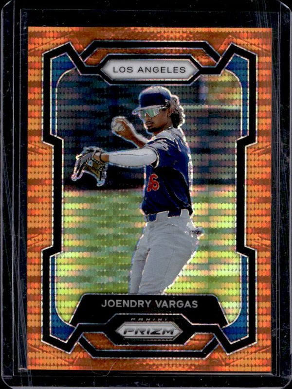 The Joendry Vargas 2024 Prizm #43 Orange Pulsar /399 card is 1 of 30 Joendry Vargas' card variations in the 2024 Prizm set being tracked by Sports Card Investor, including Base, Blue Ice, Green, Green Ice, and Pink Ice.