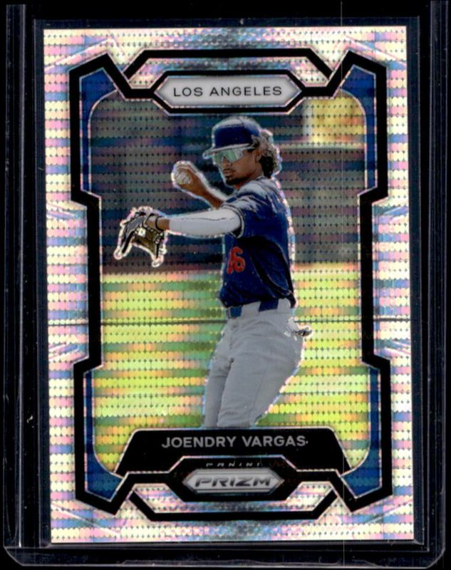 The Joendry Vargas 2024 Prizm #43 Pulsar /499 card is 1 of 30 Joendry Vargas' card variations in the 2024 Prizm set being tracked by Sports Card Investor, including Base, Blue Ice, Green, Green Ice, and Pink Ice.
