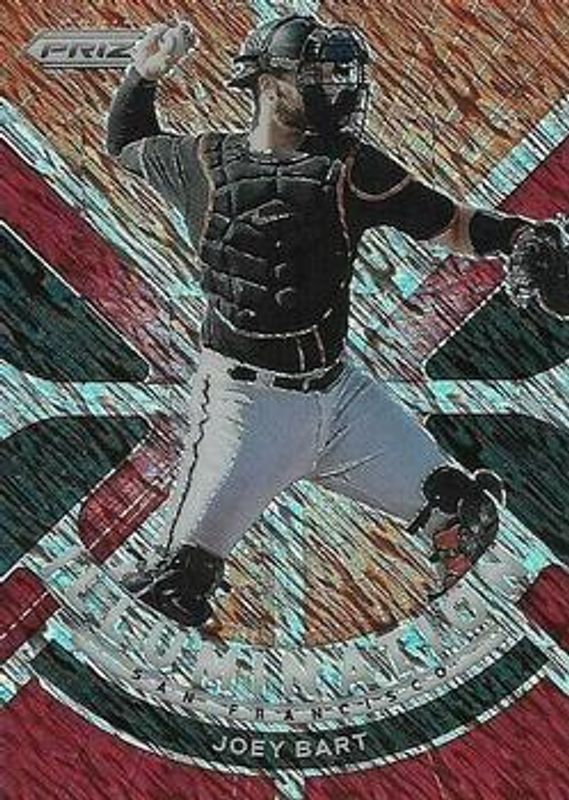 The Joey Bart 2021 Prizm #IL-3 Illumination - Red Shimmer /7 Rookie card is 1 of 114 Joey Bart's card variations in the 2021 Prizm set being tracked by Sports Card Investor, including Base, Blue, Blue Velocity, Carolina Blue, and Cosmic Haze.