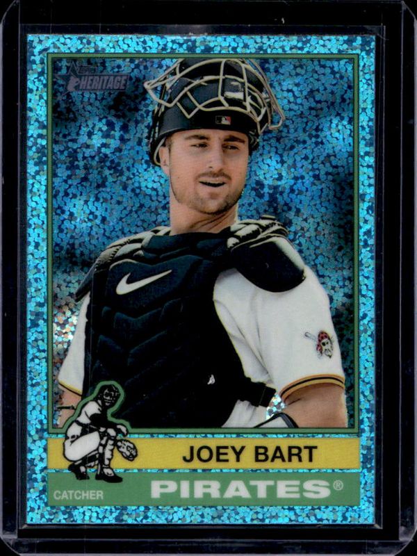 The Joey Bart 2025 Topps Heritage #449 Chrome - Aqua Sparkle Refractor card is 1 of 24 Joey Bart's card variations in the 2025 Topps Heritage set being tracked by Sports Card Investor, including Base, Black Border, Dark Blue Border, Dark Green Border, and Dark Yellow Border.