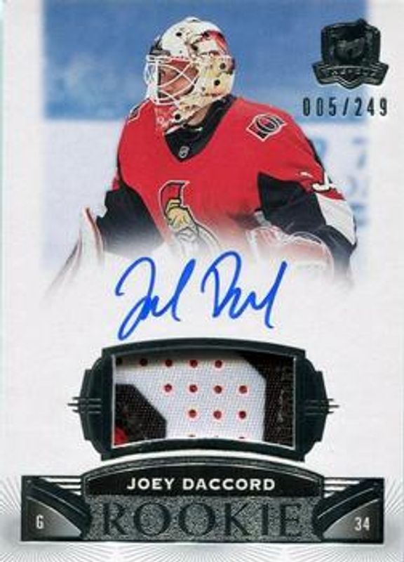 The Joey Daccord 2019 Upper Deck The Cup #69 Base /249 Rookie card is 1 of 52 Joey Daccord's card variations in the 2019 Upper Deck The Cup set being tracked by Sports Card Investor, including Ice Premieres - Printing Plates Black /1, Ice Premieres - Printing Plates Cyan /1, Ice Premieres - Printing Plates Magenta /1, Ice Premieres - Printing Plates Yellow /1, and Rookie Plates Auto - Black /1.