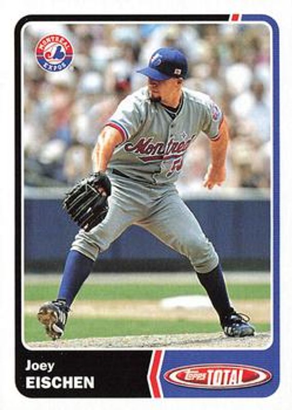 The Joey Eischen 2003 Topps Total #142 Base card is 1 of 2 Joey Eischen's card variations in the 2003 Topps Total set being tracked by Sports Card Investor, including Silver.