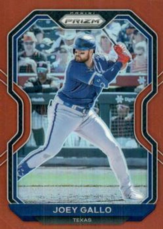 The Joey Gallo 2021 Prizm #153 Red card is 1 of 80 Joey Gallo's card variations in the 2021 Prizm set being tracked by Sports Card Investor, including Base, Blue, Blue Velocity, Carolina Blue, and Cosmic Haze.
