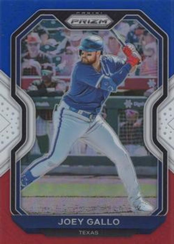 The Joey Gallo 2021 Prizm #153 Red White Blue card is 1 of 80 Joey Gallo's card variations in the 2021 Prizm set being tracked by Sports Card Investor, including Base, Blue, Blue Velocity, Carolina Blue, and Cosmic Haze.