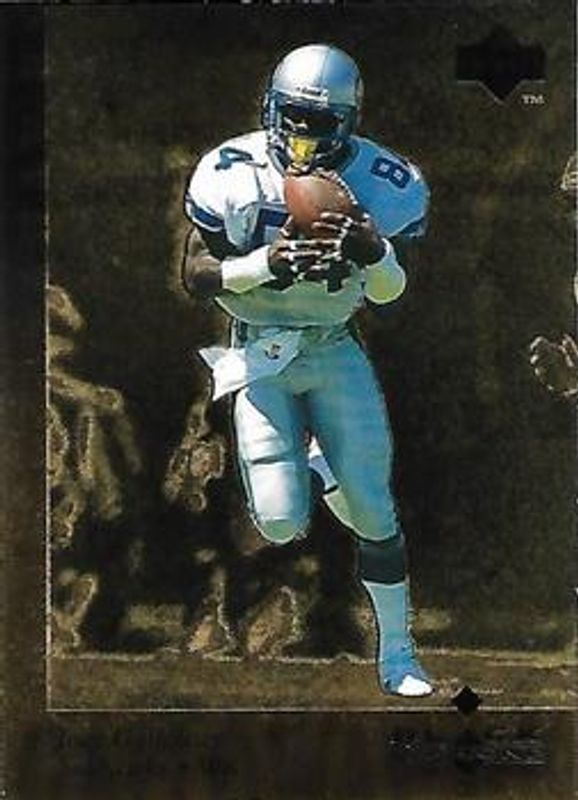 The Joey Galloway 1997 Upper Deck Black Diamond #41 Gold card is 1 of 3 Joey Galloway's card variations in the 1997 Upper Deck Black Diamond set being tracked by Sports Card Investor, including Base, and Title Quest /100.