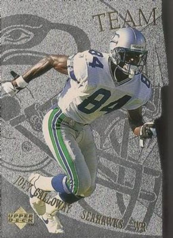 The Joey Galloway 1997 Upper Deck #TM53 Team Mates card is 1 of 4 Joey Galloway's card variations in the 1997 Upper Deck set being tracked by Sports Card Investor, including Base, Game Dated Moment Foils, and Game Worn Jerseys.