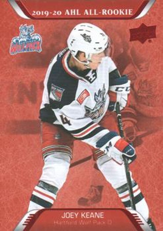 The Joey Keane 2020 Upper Deck AHL #206 Red card is 1 of 11 Joey Keane's card variations in the 2020 Upper Deck AHL set being tracked by Sports Card Investor, including #206 Base, #41 Base, #41 UD Exclusives /100, #206 Gold /25, and #41 UD High Gloss /10.
