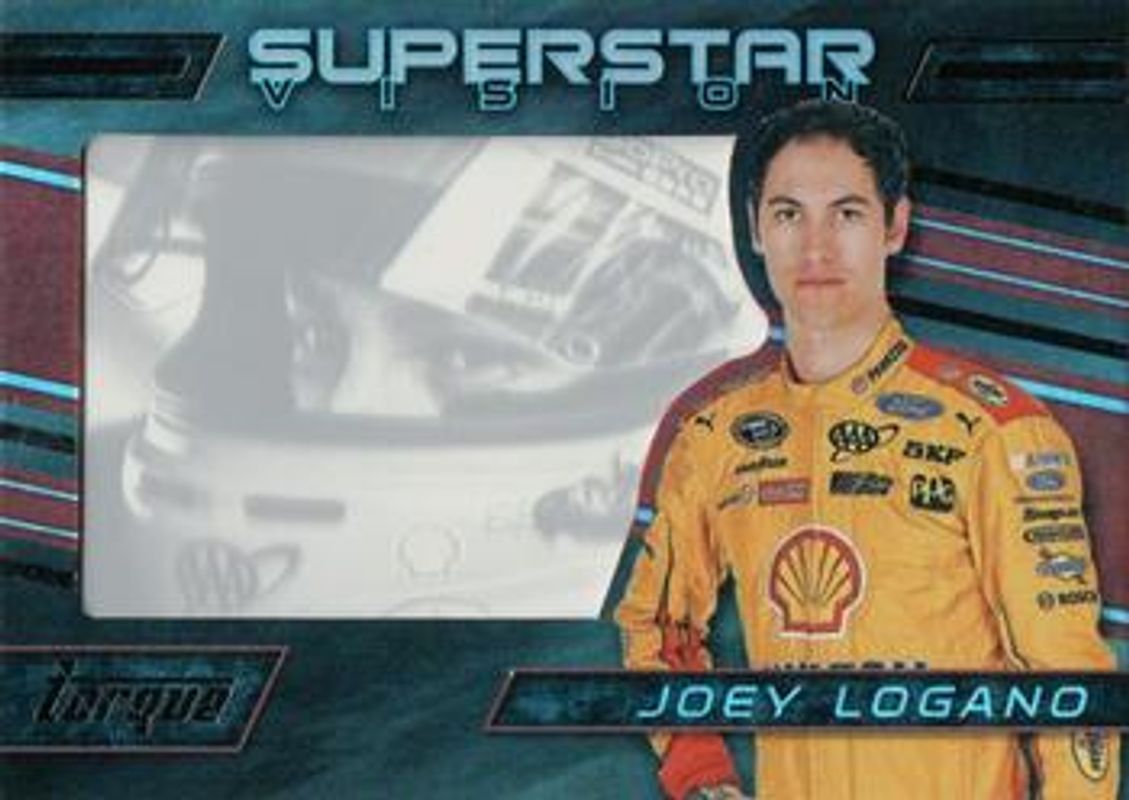 The Joey Logano 2016 Torque NASCAR #SV18 Superstar Vision card is 1 of 119 Joey Logano's card variations in the 2016 Torque NASCAR set being tracked by Sports Card Investor, including #86 Base, #8 Base, #59 Base, #86 Gold, and #8 Gold.