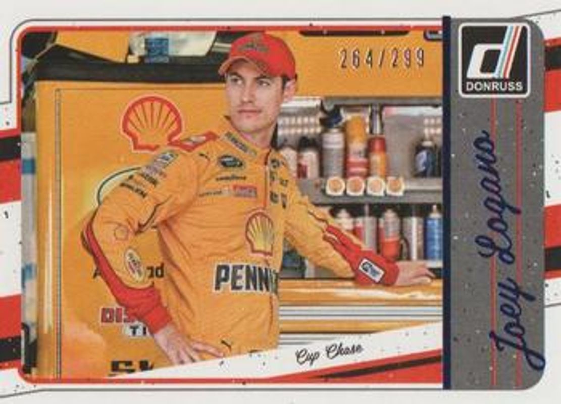 The Joey Logano 2017 Donruss NASCAR #125 Blue Foil /299 card is 1 of 85 Joey Logano's card variations in the 2017 Donruss NASCAR set being tracked by Sports Card Investor, including #97 Base, #116 Base, #125 Base, #142 Base, and #43 Base.
