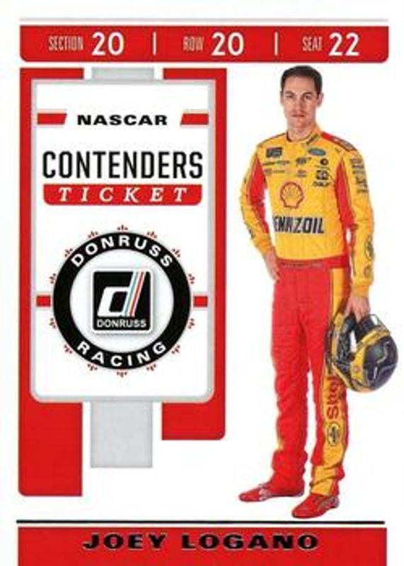 The Joey Logano 2020 Donruss NASCAR #C3 Contenders Ticket card is 1 of 115 Joey Logano's card variations in the 2020 Donruss NASCAR set being tracked by Sports Card Investor, including #106 Base, #172 Base, #39 Base, #6 Base, and #106 Carolina Blue.