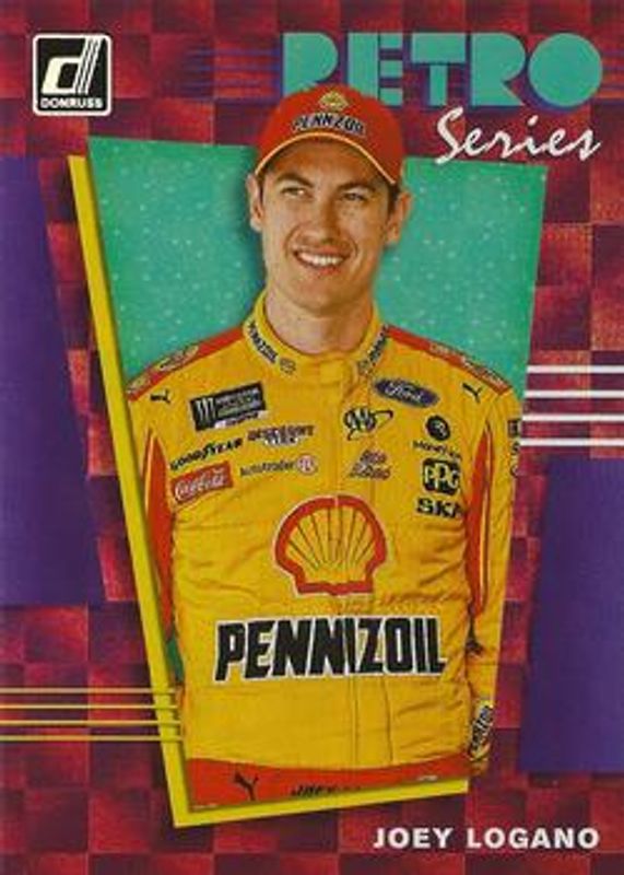 The Joey Logano 2020 Donruss NASCAR #R2 Retro Series Checkers card is 1 of 115 Joey Logano's card variations in the 2020 Donruss NASCAR set being tracked by Sports Card Investor, including #106 Base, #172 Base, #39 Base, #6 Base, and #106 Carolina Blue.