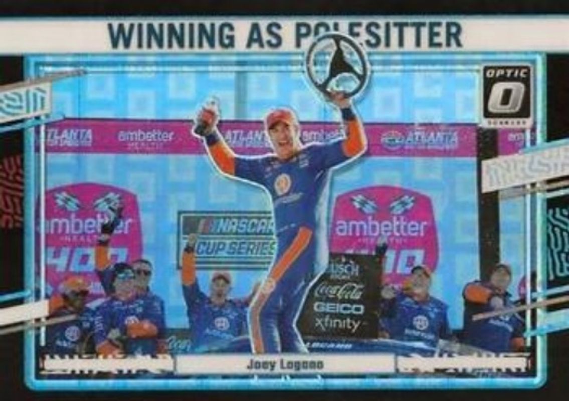 The Joey Logano 2024 Donruss NASCAR #186 Optic Black Pandora card is 1 of 173 Joey Logano's card variations in the 2024 Donruss NASCAR set being tracked by Sports Card Investor, including #29b Base, #29a Base, #89 Base, #186 Base, and #186 Optic.