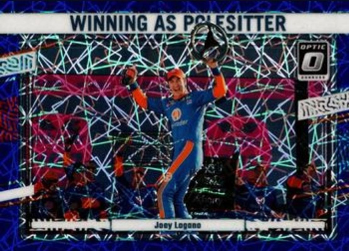 The Joey Logano 2024 Donruss NASCAR #186 Optic Blue Velocity card is 1 of 173 Joey Logano's card variations in the 2024 Donruss NASCAR set being tracked by Sports Card Investor, including #29b Base, #29a Base, #89 Base, #186 Base, and #186 Optic.