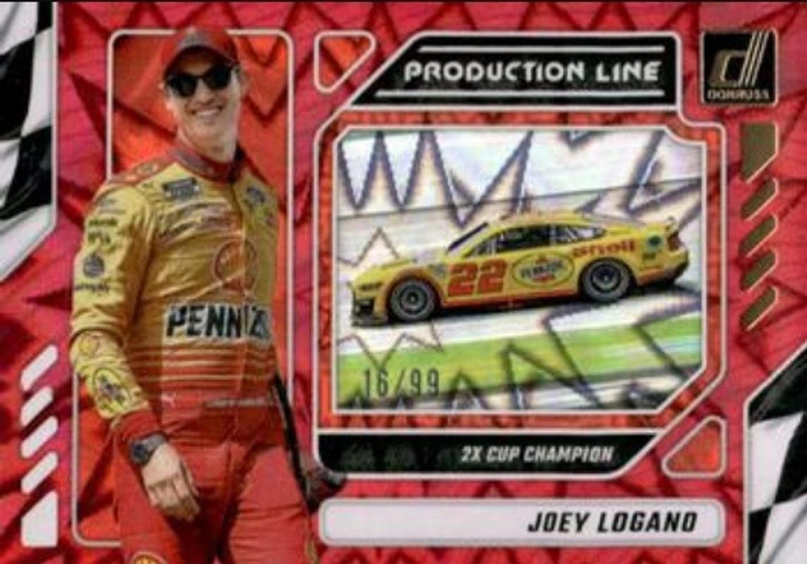 Joey Logano 2024 Donruss NASCAR #16 Production Line Red Xplosion /99 RAW Price Guide