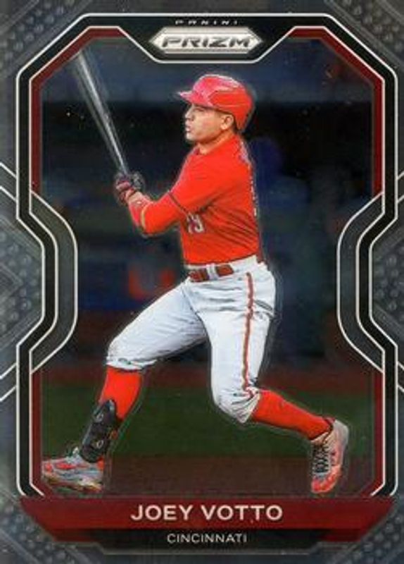 The Joey Votto 2021 Prizm #221 Base card is 1 of 43 Joey Votto's card variations in the 2021 Prizm set being tracked by Sports Card Investor, including Blue, Blue Velocity, Carolina Blue, Cosmic Haze, and Giraffe.