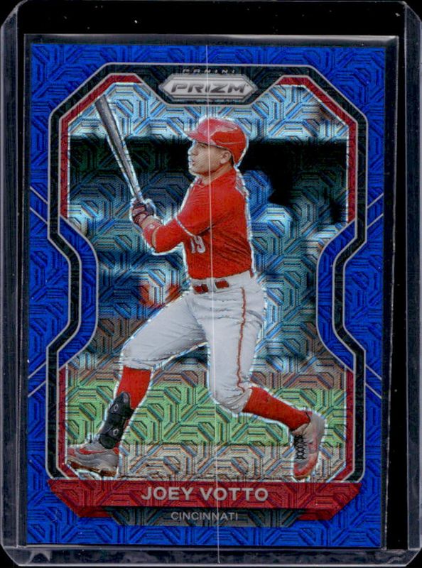 The Joey Votto 2021 Prizm #221 Blue Mojo /199 card is 1 of 43 Joey Votto's card variations in the 2021 Prizm set being tracked by Sports Card Investor, including Base, Blue, Blue Velocity, Carolina Blue, and Cosmic Haze.