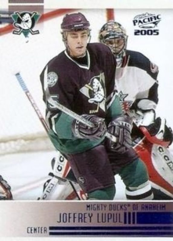 The Joffrey Lupul 2004 Pacific #5 Blue /250 card is 1 of 5 Joffrey Lupul's card variations in the 2004 Pacific set being tracked by Sports Card Investor, including Base, Red, Calder Collection /1500, and 2004 NHL All Star Fantasy Calder Collection - Gold /499.