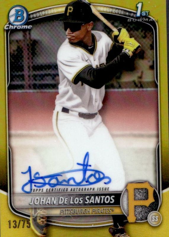 2025 Bowman Chrome Johan De Los Santos Auto Yellow Refractor /75 Pirates 1st